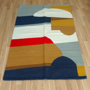 Handmade Modern Light Blue and Light Beige and Mustard Yellow and Light Gray and Black Kilim