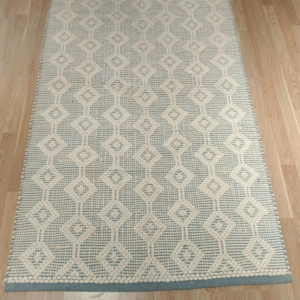 Handmade Modern Cotton Baby-Blue And Off-White Kilim